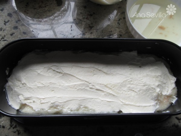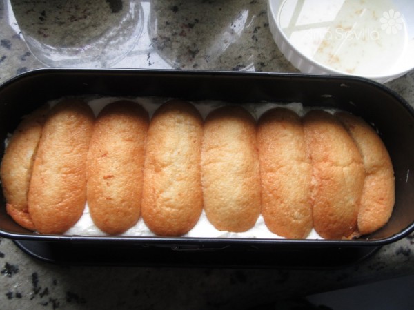 4- Montaje: Alternar capas de soletillas, emborrachando cada bizcochito un poco con el jugo de la piña restante, capa de piña y encima, crema de mascarpone. Dar golpecitos contra la meseta con el molde entre capa y capa, para que se compacte todo mejor. Llevar a la nevera unas 2-3 horas, bien tapado. Adornar a gustos.
