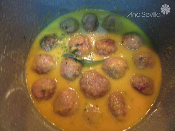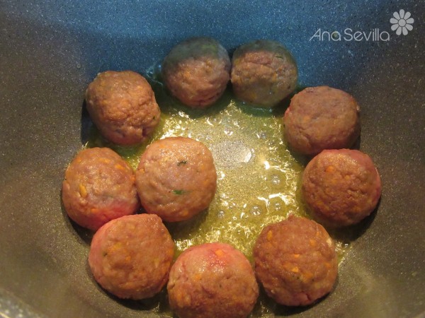 2- Formar las albóndigas pasándolas por un poco de harina, sacudiendo el exceso. Dorar con un poco de aceite e ir reservando.