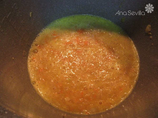 1- Picar menuda la cebolla y zanahoria y sofreír en el mismo aceite de dorar la carne.