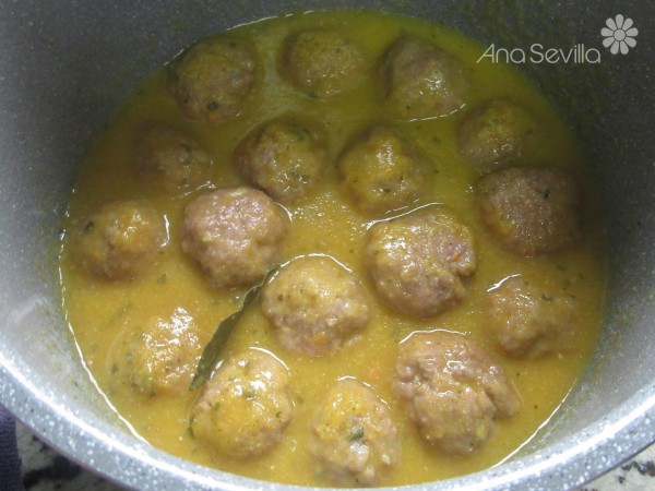 3- A continuación la cerveza y caldo, dar un hervor 3-4 minutos sin tapa, para favorecer la evaporación del alcohol y triturar. 4- Volcar las albóndigas, laurel y perejil picado y cocer unos 15-20 minutos a fuego medio.