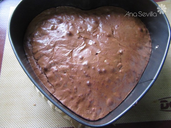 5- Hornear unos 30 minutos, según el grosor del molde. Pinchar con aguja, si sale muy poco manchada, ya estará listo. Dejar enfriar y desmoldar. Se puede servir templado con una buena bola de helado.